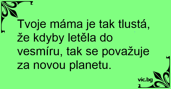 Tvoje máma je tak tlustá, že kdyby letěla do vesmíru, tak se považuje za novou planetu.