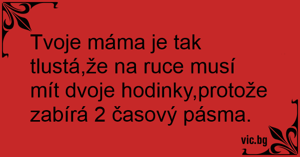 Tvoje máma je tak tlustá,že na ruce musí mít dvoje hodinky,protože zabírá 2 časový pásma.