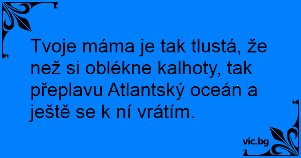 Tvoje máma je tak tlustá, že než si oblékne kalhoty, tak přeplavu Atlantský oceán a ještě se k ní vrátím.