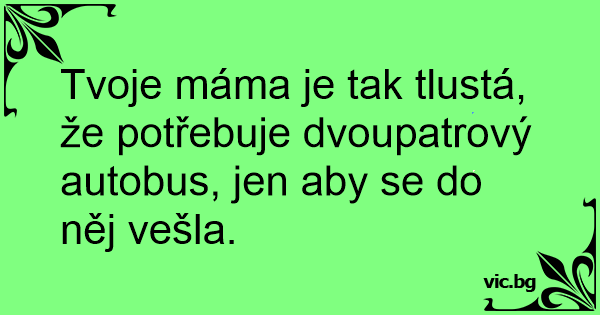 Tvoje máma je tak tlustá, že potřebuje dvoupatrový autobus, jen aby se do něj vešla.