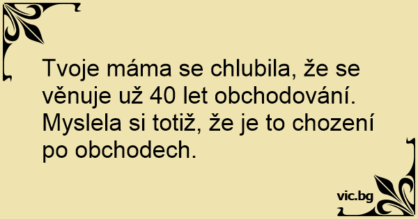 Tvoje máma se chlubila, že se věnuje už 40 let obchodování. Myslela si totiž, že je to chození po obchodech.