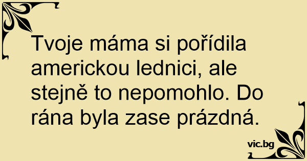 Tvoje máma si pořídila americkou lednici, ale stejně to nepomohlo. Do rána byla zase prázdná.