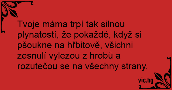 Tvoje máma trpí tak silnou plynatostí, že pokaždé, když si pšoukne na hřbitově, všichni zesnulí vylezou z hrobů a rozutečou se na všechny strany.