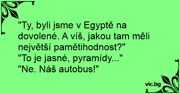"Ty, byli jsme v Egyptě na dovolené. A víš, jakou tam měli největší pamětihodnost?"