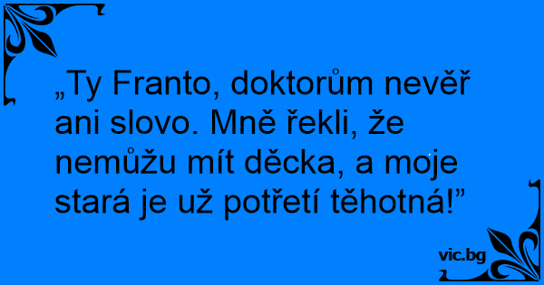 „Ty Franto, doktorům nevěř ani slovo. Mně řekli, že nemůžu mít děcka, a moje stará je už potřetí těhotná!”