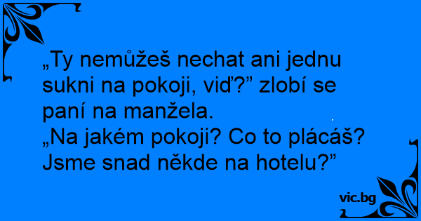 „Ty nemůžeš nechat ani jednu sukni na pokoji, viď?” zlobí se paní na manžela.