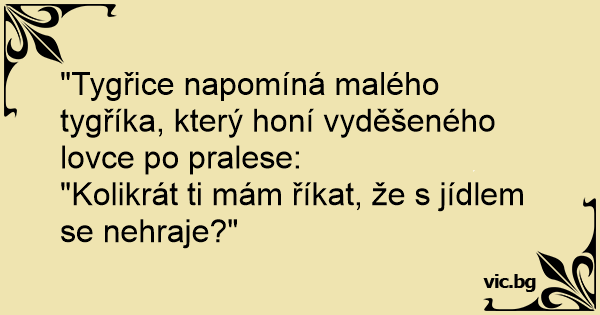 "Tygřice napomíná malého tygříka, který honí vyděšeného lovce po pralese: