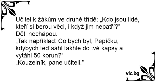 Učitel k žákům ve druhé třídě: „Kdo jsou lidé, kteří si berou věci, i když jim nepatří?”