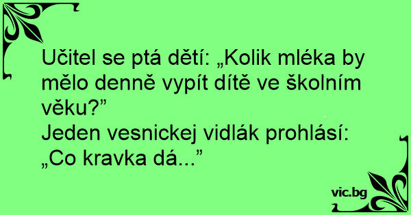Učitel se ptá dětí: „Kolik mléka by mělo denně vypít dítě ve školním věku?”
