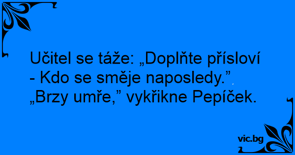 Učitel se táže: „Doplňte přísloví - Kdo se směje naposledy.”