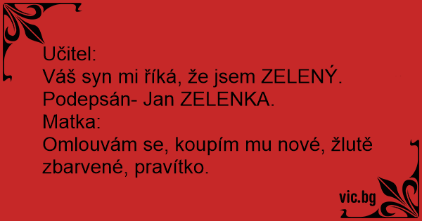 Váš syn mi říká, že jsem ZELENÝ.