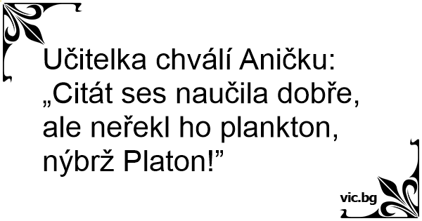 Učitelka chválí Aničku: „Citát ses naučila dobře, ale neřekl hо plankton, nýbrž Platon!”