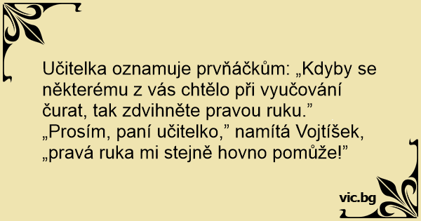 „Prosím, paní učitelko,” namítá Vojtíšek, „pravá ruka mi stejně hovno pomůže!”