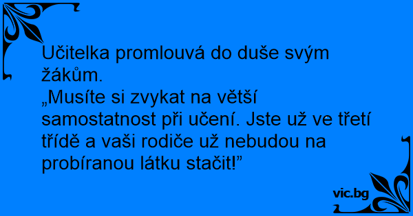 „Musíte si zvykat na větší samostatnost při učení. Jste už ve třetí třídě a vaši rodiče už nebudou na probíranou látku stačit!”