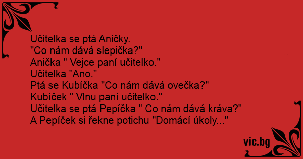Učitelka se ptá Pepíčka " Co nám dává kráva?"