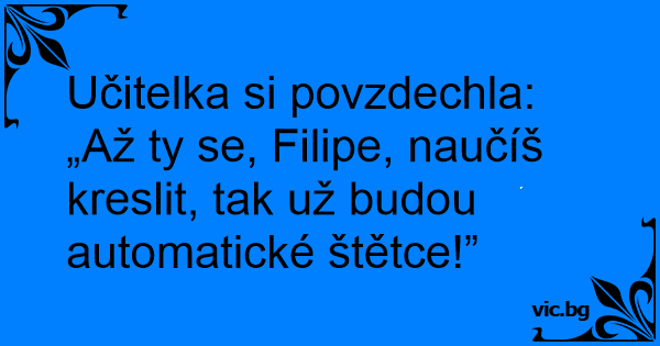 Učitelka si povzdechla: „Až ty se, Filipe, naučíš kreslit, tak už budou automatické štětce!”