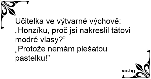 Učitelka ve výtvarné výchově: „Honzíku, proč jsi nakreslil tátovi modré vlasy?”