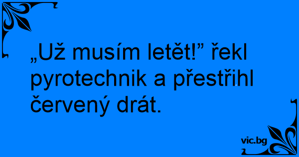 „Už musím letět!” řekl pyrotechnik a přestřihl červený drát.
