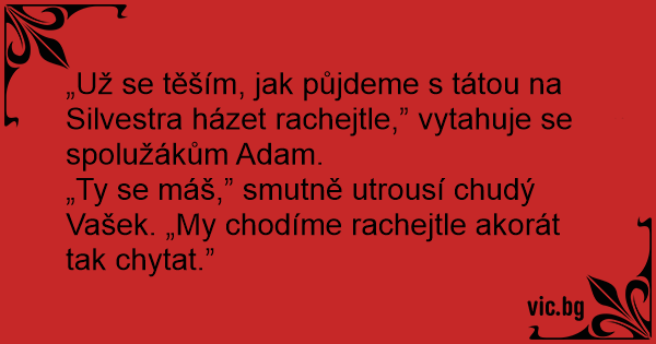 „Ty se máš,” smutně utrousí chudý Vašek. „My chodíme rachejtle akorát tak chytat.”