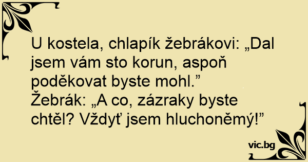 Žebrák: „A co, zázraky byste chtěl? Vždyť jsem hluchoněmý!”