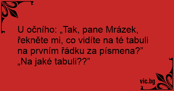 U očního: „Tak, pane Mrázek, řekněte mi, co vidíte na té tabuli na prvním řádku za písmena?”
