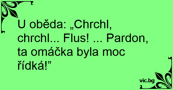 U oběda: „Chrchl, chrchl... Flus! ... Pardon, ta omáčka byla moc řídká!”