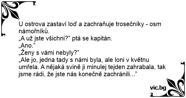„Ale jo, jedna tady s námi byla, ale loni v květnu umřela. A nějaká svině ji minulej tejden zahrabala, tak jsme rádi, že jste nás konečně zachránili...”