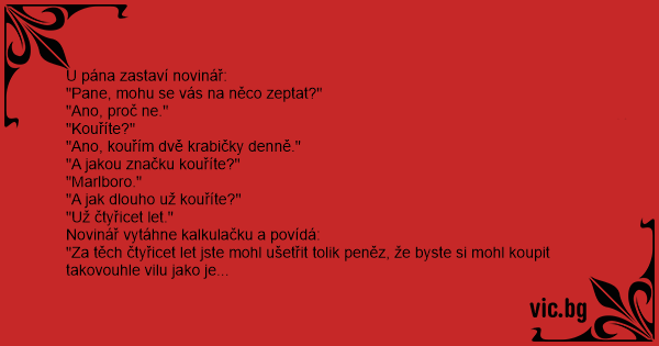 "No vidíte, nekouříte, vilu nemáte. A já kouřím a představte si, že ta vila je moje."