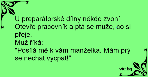"Posílá mě k vám manželka. Mám prý se nechat vycpat!"