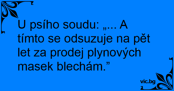 U psího soudu: „... A tímto se odsuzuje na pět let za prodej plynových masek blechám.”