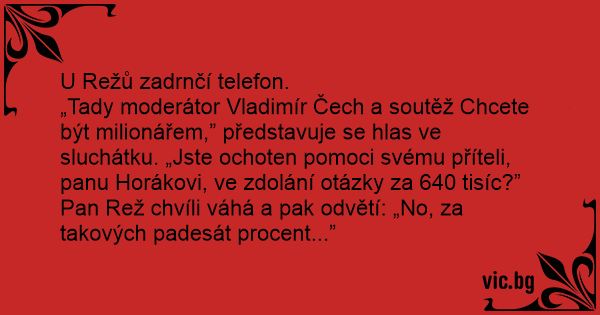 Pan Rež chvíli váhá a pak odvětí: „No, za takových padesát procent...”