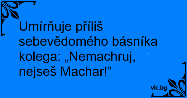 Umírňuje příliš sebevědomého básníka kolega: „Nemachruj, nejseš Machar!”
