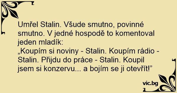 „Koupím si noviny - Stalin. Koupím rádio - Stalin. Přijdu do práce - Stalin. Koupil jsem si konzervu... a bojím se ji otevřít!”
