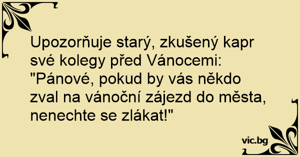 "Pánové, pokud by vás někdo zval na vánoční zájezd do města, nenechte se zlákat!"