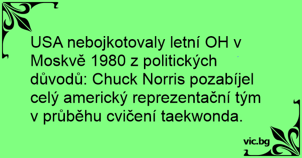 USA nebojkotovaly letní OH v Moskvě 1980 z politických důvodů: Chuck Norris pozabíjel celý americký reprezentační tým v průběhu cvičení taekwonda.