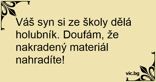 Váš syn si ze školy dělá holubník. Doufám, že nakradený materiál nahradíte!