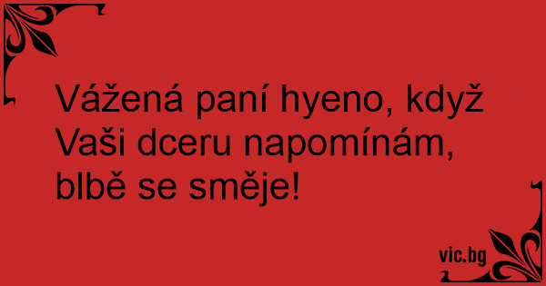 Vážená paní hyeno, když Vaši dceru napomínám, blbě se směje!