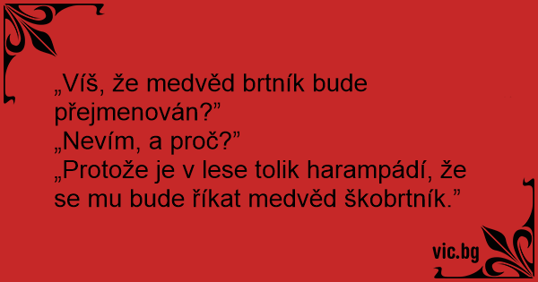 „Protože je v lese tolik harampádí, že se mu bude říkat medvěd škobrtník.”