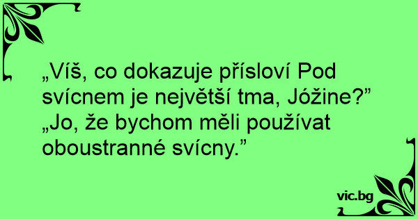 „Víš, co dokazuje přísloví Pod svícnem je největší tma, Jóžine?”