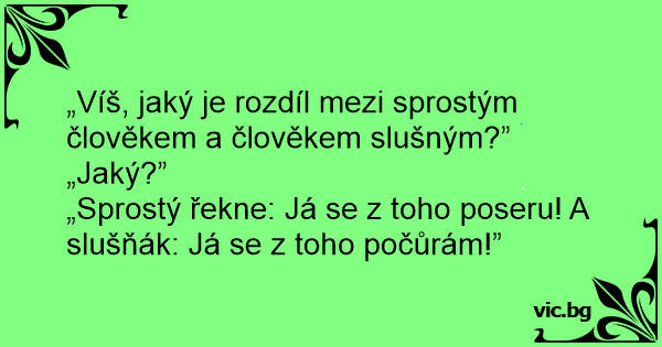 „Sprostý řekne: Já se z toho poseru! A slušňák: Já se z toho počůrám!”
