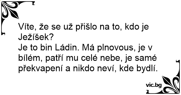 Je to bin Ládin. Má plnovous, je v bílém, patří mu celé nebe, je samé překvapení a nikdo neví, kde bydlí.