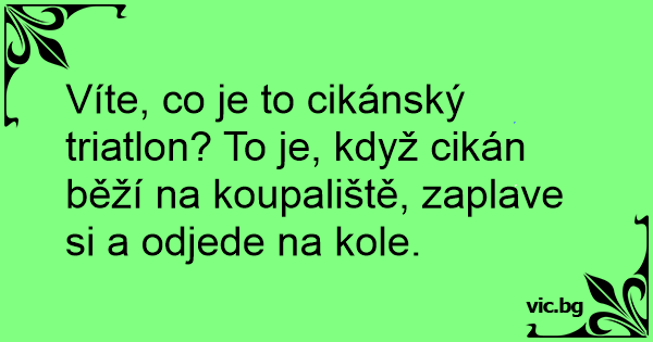 Víte, co je to cikánský triatlon? To je, když cikán běží na koupaliště, zaplave si a odjede na kole.