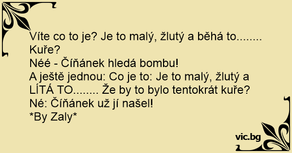 Víte co to je? Je to malý, žlutý a běhá to........ Kuře?