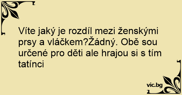 Víte jaký je rozdíl mezi ženskými prsy a vláčkem?Žádný. Obě sou určené pro děti ale hrajou si s tím tatínci