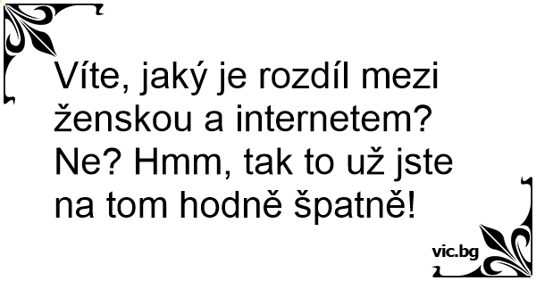 Víte, jaký je rozdíl mezi ženskou a internetem?