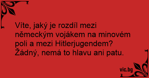 Víte, jaký je rozdíl mezi německým vojákem na minovém poli a mezi Hitlerjugendem?