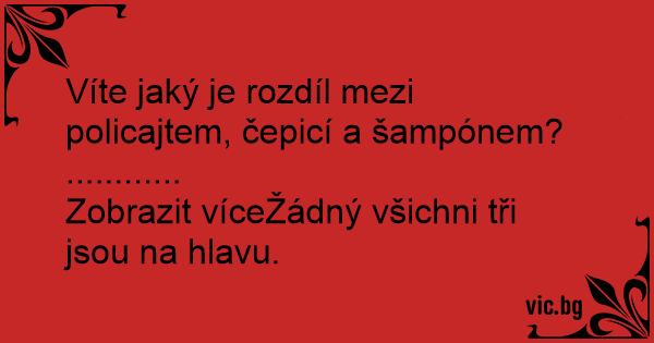 Víte jaký je rozdíl mezi policajtem, čepicí a šampónem?