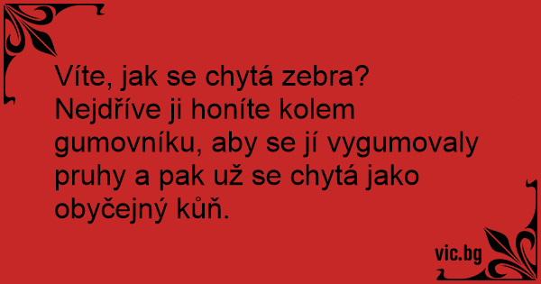 Víte, jak se chytá zebra?...