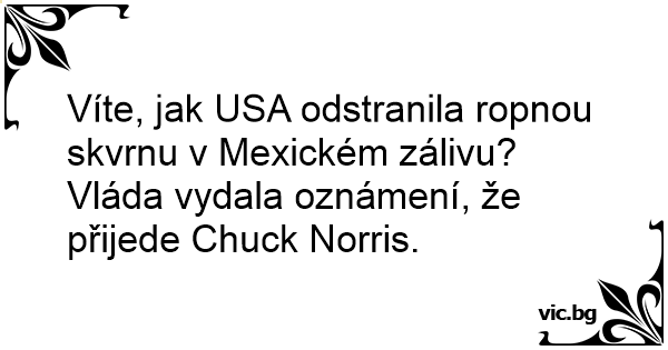 Víte, jak USA odstranila ropnou skvrnu v Mexickém zálivu? Vláda vydala oznámení, že přijede Chuck Norris.