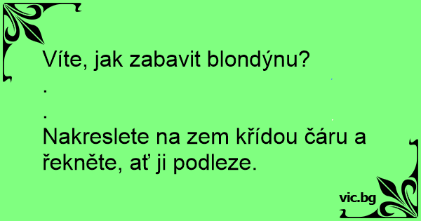 Víte, jak zabavit blondýnu?<br />.<br />.<br />Nakreslete na zem křídou čáru a řekněte, ať ji podleze.